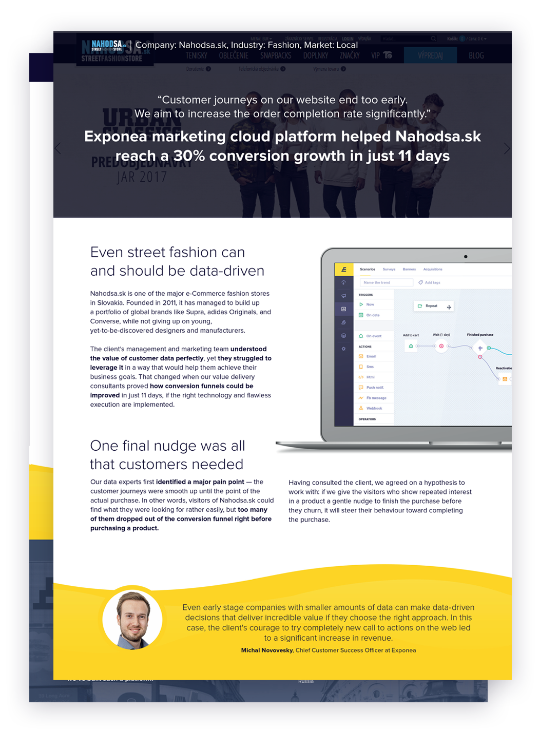 NAHODSA.sk is one of the major e-Commerce fashion stores in Slovakia. Founded in 2011, it has managed to build up a portfolio of global brands like Supra, adidas Originals, and Converse, while not giving up on young, yet-to-be-discovered designers and manufacturers.